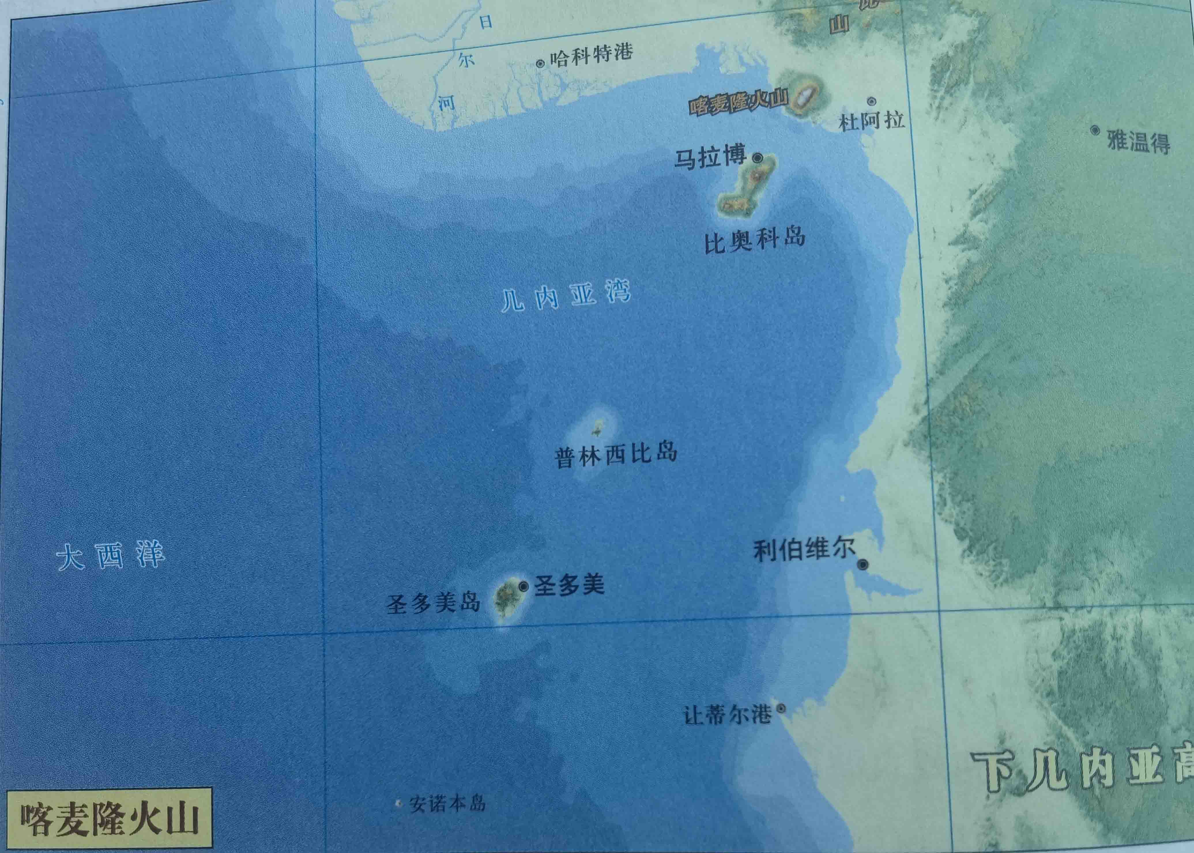 当葡萄牙人沿着象牙海岸、黄金海岸和奴隶海岸航行时,以为就此向东可以到达印度洋。当他们到达喀麦隆火山时,却发现海岸线又向南拐了。看来,从赤道附近驶入印度洋是不可能了。随后,葡萄牙人又在喀麦隆火山附近的海面上发现了4个岛屿:比奥科岛、圣多美岛、普林西比岛和安诺本岛。