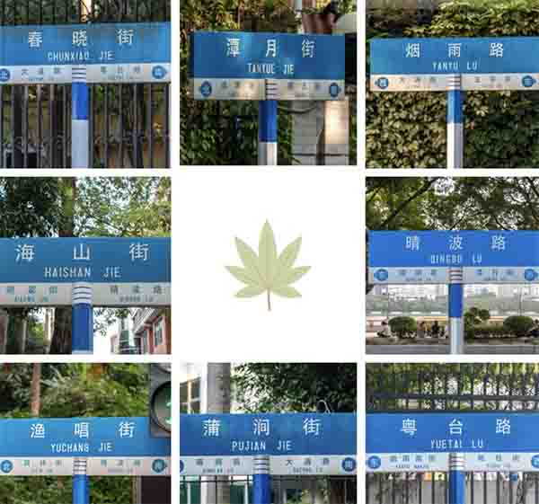 一个拥有高端文化品位的江心岛出现在公众视野,岛中过去的旧地名似乎与这些现代建筑不搭调。1989年,将“二沙头”改名为“二沙岛”,原路名全部取消,选用以“羊城八景”来为“新岛”道路命名的方案,这就有了今天人们看到的诗意路名。