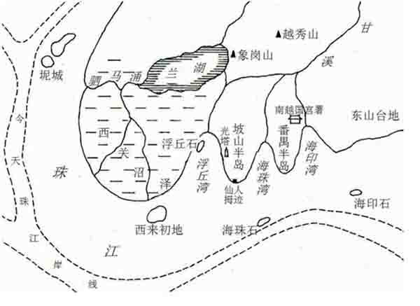 如今,流花湖、中国大酒店一带高楼林立。秦汉时,这里还是一片碧波,兰湖码头就在这里。往来西江、北江的船只经由官窑、石门进入广州后,常泊于此。兰湖码头使用时间很长,到了唐代还是一个避风港。不过,那时的码头区已移至光塔路一带。