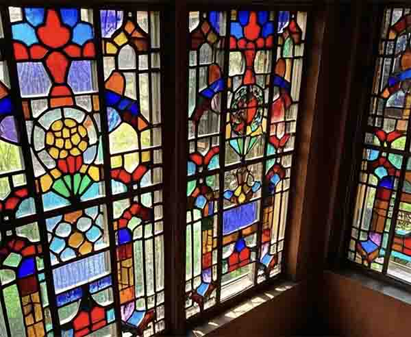 在不同的房间里,红、黄、蓝、绿、紫、金等不同颜色都有其一席之地,且变幻莫测。这是光线透过西关大屋特有的广式玻璃窗呈现出的色彩斑斓的效果。广式玻璃窗是欧洲平板玻璃工艺与传统中式窗棂的创新融合,五光十色的玻璃窗营造出绚丽典雅的氛围,成为当时广州民居中最亮丽的一道风景。