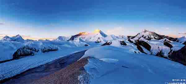 卡达山谷的冰川洁白如玉,有的像铺在山坡上的奶油冰激凌,有的如奔腾的大河,有的呈优美的S形转弯。而且冰川末端常与冰湖相连,有的冰川末端整整齐齐,好像漂在湖水里,非常神奇。