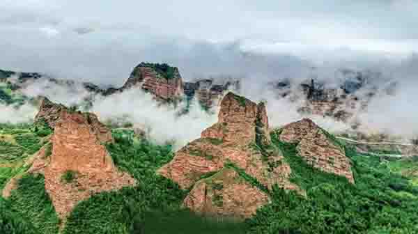 这片被地质学家誉为“中国高原丹霞博物馆“的秘境,以古近系红层为画布,用2400万年的地质运动为刻刀,在海拔3100米的高原上,雕刻出世界罕见的干旱性气候丹霞奇观。一座座丹霞岩峰像出水芙蓉,红色的丹峰与绿色的湖水,演绎出山水交融之美。