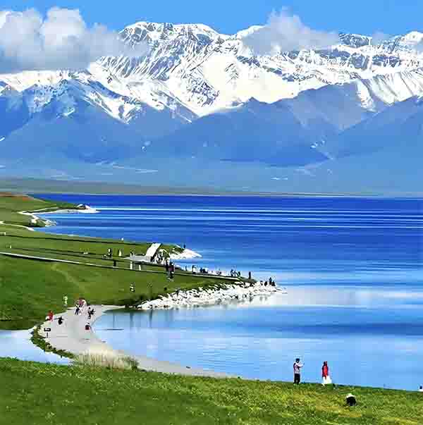 赛里木湖如同镶嵌在山间的宝石,四周是广袤的草原和墨绿色的针叶林,而背景则是绵延不绝的雪山。这种视觉从压抑到释放的强烈对比,使得穿越天山重重屏障后,初见赛里木湖的瞬间迎来了一阵猛烈的美的冲击波。