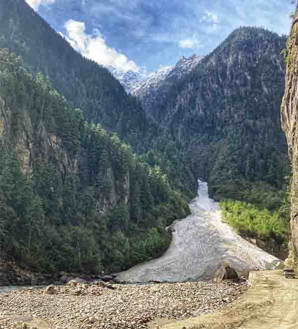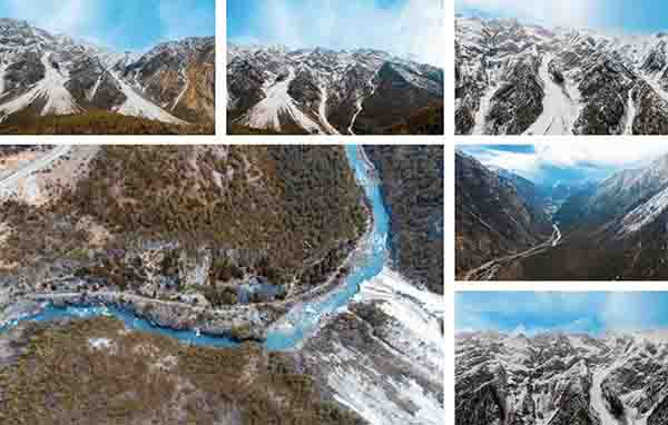 若将易贡藏布与帕龙藏布连接起来,总长度可达552公里,甚至超越了世界排名第一的雅鲁藏布大峡谷(504.6公里)。峡谷的深度也同样让人惊叹,整段峡谷平均深度为3555米。从通麦开始,至汇入雅鲁藏布江之前,峡谷仿佛迎来高潮:一侧屹立着加拉白垒峰,另一侧的扎曲后山遥相呼应,此段峡谷深度最大,达4001米。