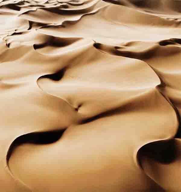 羽毛状沙丘的“羽翼”,由数十根“羽毛”组成“,每根”羽毛“的”羽管“,由一串单个新月形沙丘前后相连,构成从东北向西南延伸的沙垄。”羽管“两侧的”羽毛“,是与羽管几近垂直、横卧在垄间走廊上的一条条明暗相间的沙带。