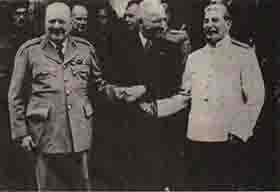 1945年7月17日至8月2日,苏、美、英三国首脑举行波茨坦会议,决定战后德国应非军国主义化,实行民主化,肃清纳粹主义。这次会议对战后处置德国和欧洲和平问题确立了基本原则,达成某些协议,并预示了德国将出现分裂的局面。会议就结束对日作战的条件和战后处置日本的问题达成协议,协议以中、美、英三国共同宣言的形式发表,即《波茨坦公告》。苏联对日宣战后成为四国共同宣言。