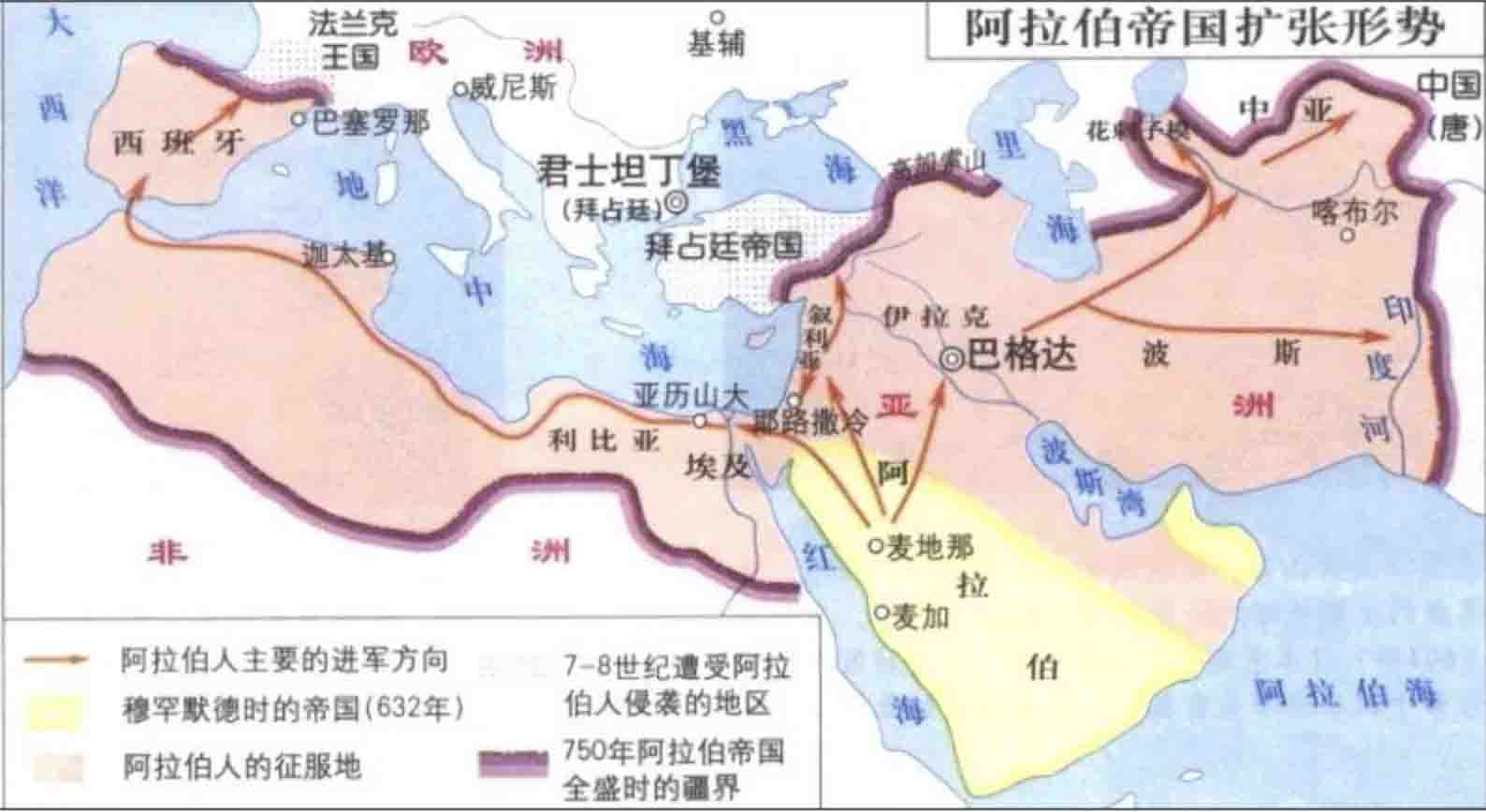 在阿拉伯帝国最强大的时候,不仅包括阿拉伯半岛,从伊朗高原,到地中海东岸,再到地中海南岸的北非,甚至欧洲伊比利半岛的南部,也都是它的势力范围。虽然阿拉伯帝国最终崩溃,但这些地方经过穆斯林几百年的统治,已经被伊斯兰化了。