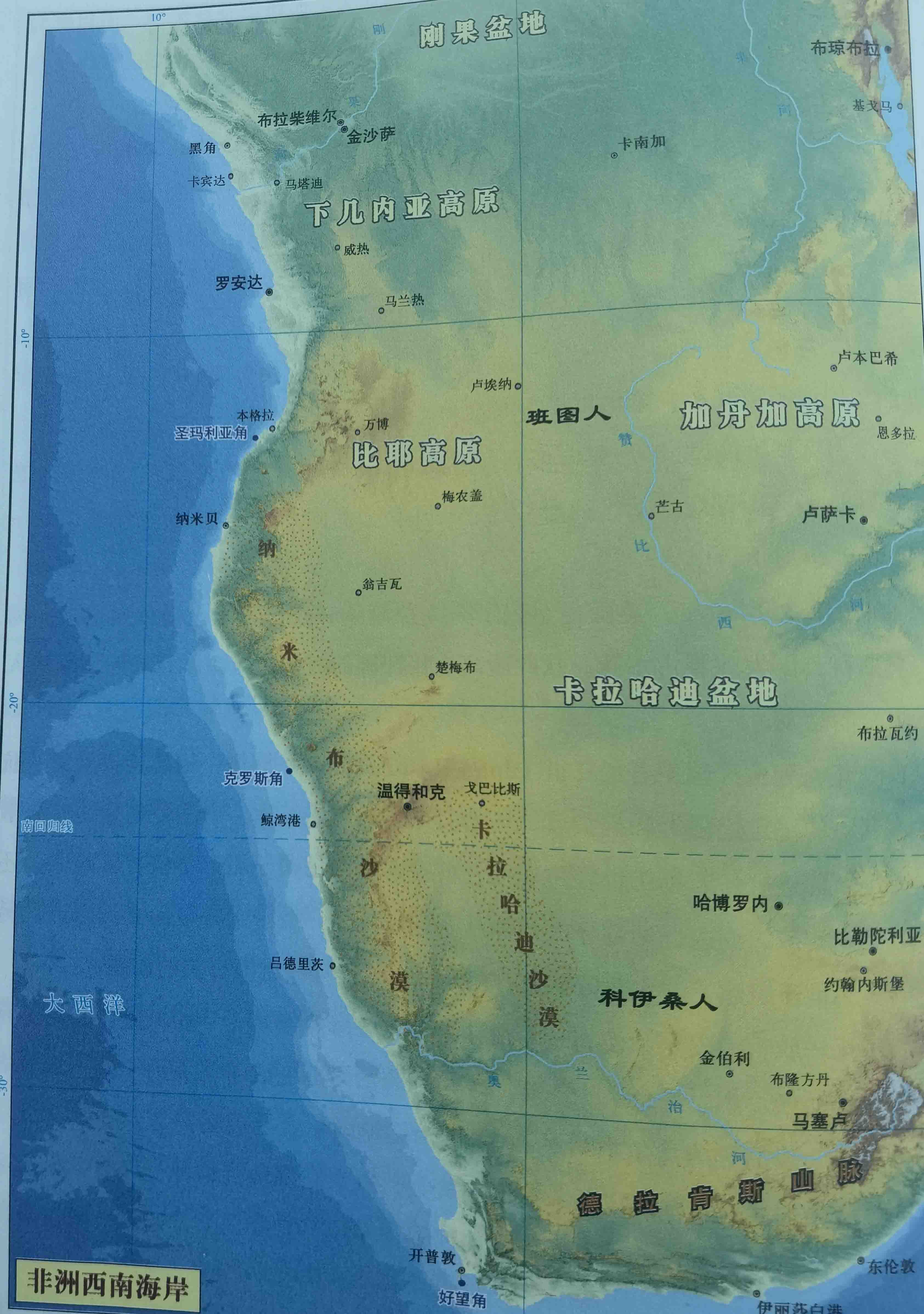 再往南,葡萄牙人惊讶地发现沿海一带出现了沙漠。这片沙漠正是纳米布沙漠,从今天的纳米贝一直到奥兰治河,南北长2100公里,东西最宽处160公里,最窄处只有10公里。它位于南回归线附近,和撒哈拉沙漠在纬度了正好南北对称。