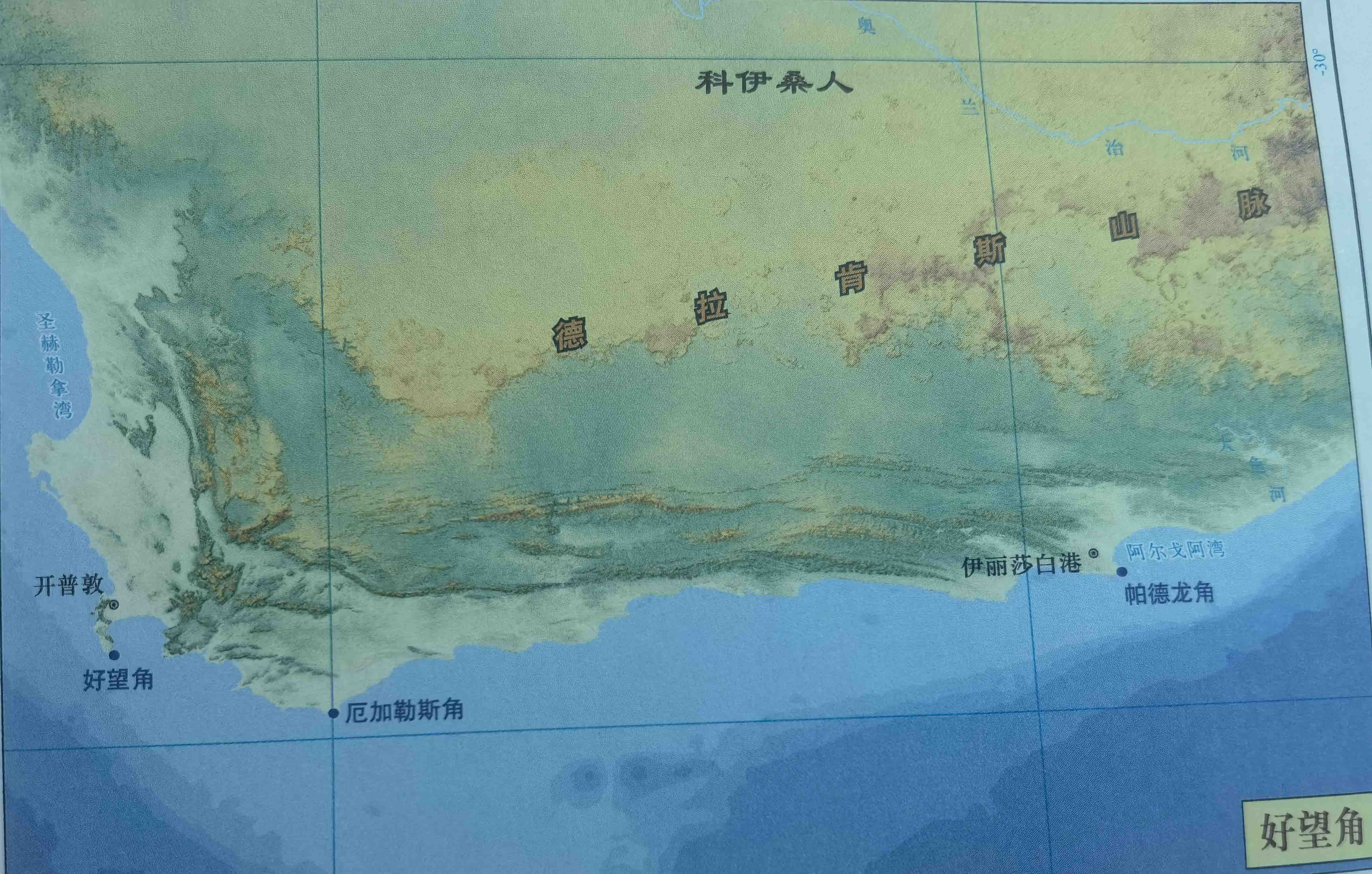 此时的迪亚士并不知道前方的沙漠还有多长,但已没有退路,因为他已经沿着沙漠走了将近1500公里,若退回去补给肯定不够,只有硬着头皮往前。驶过奥兰治河口时,船队终于得到淡水的补给,沙漠出渐渐远去,眼前开始出现绿色的植物,一船人终于看到了希望。