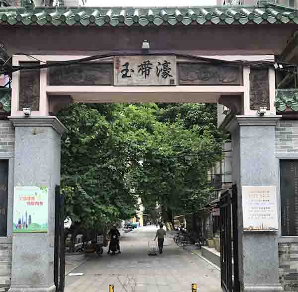 如今,珠光路高第街旁和德政中路文德七巷交界处依旧立着写有“玉带濠”的牌坊,走进小巷可见路面上有二三十个小洞。据当地街坊介绍,这些洞可以直接排水。路面下便是当年的河道,直到20世纪50年代家,这里还可通行小艇。