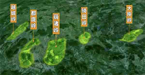 经过6亿年的地质变迁,一片汪洋终成广东“屋脊”。南岭横跨粤桂湘赣等省区交界处,东西延绵约700公里,南北宽约400公里的山脉,自西向东,越城岭、都庞岭、萌渚岭、骑田岭、大庚岭一字排开,主要呈东西走向,故又称五岭。