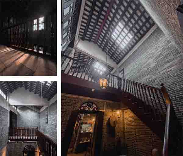 与其他房屋相比,西关大屋有着许多不同的地方。其中,最为讲究的要数西关大屋的门,它是由矮脚吊扇门、趟栊和大门组成的“三重门”。临街的第一扇门叫矮脚吊扇门,为四扇对开小折门,通风采光之余又可当作屏风;中间的第二扇门是趟栊门,由十余根圆木条组成,犹如一个可活动的栏栅,横向开合;推开这扇“趟栊”,后面才是真正的大门。