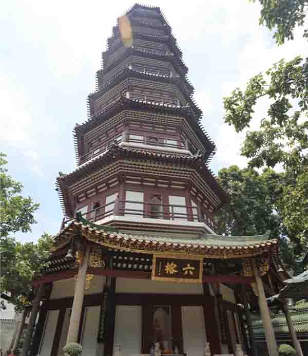 名刹落成后,很快成为广州城中胜迹。唐上元二年(675),写出千古名篇《滕王阁序》的初唐少年天才王勃,去交趾(今越南)探望被贬的父亲,途经广州,到寺中游览礼佛,受寺僧所邀,写下了《广州宝庄严寺舍利塔碑》,一时间这座岭南古刹名声大噪。六榕寺楹联中的“博士”正是指王勃。
