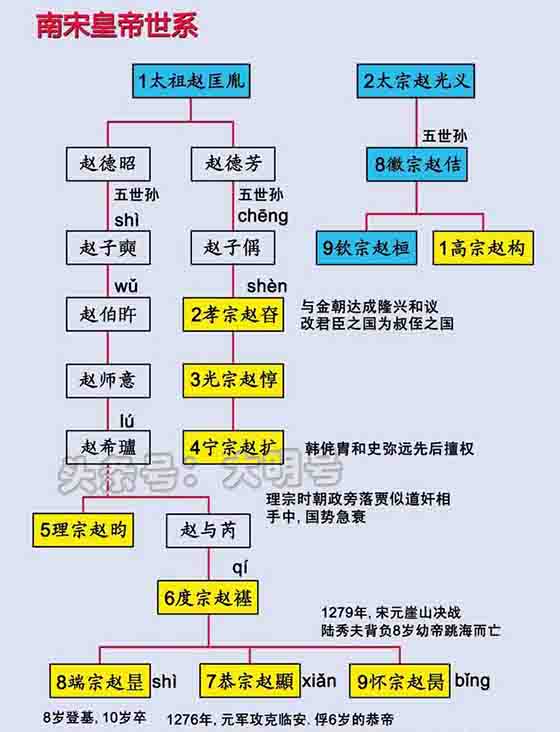 在内政上,嘉定以后,南宋又进入更黑暗、更腐败的史弥远擅权时期;在对外上,金朝虽然衰弱,但一个更强大的对手----蒙古已经对富庶的南方垂涎三尺。蒙古灭西夏、金后,便以“端平入洛”为借口,大举南下。从此宋、蒙之间开始了长达 45 年的战争。此后,宋军节节败退。虽然也有一些像文天祥一样的爱国志士,但随着崖山之战的惨败,连南宋最后一个象征----帝?也命丧大海,南宋彻底灭亡。