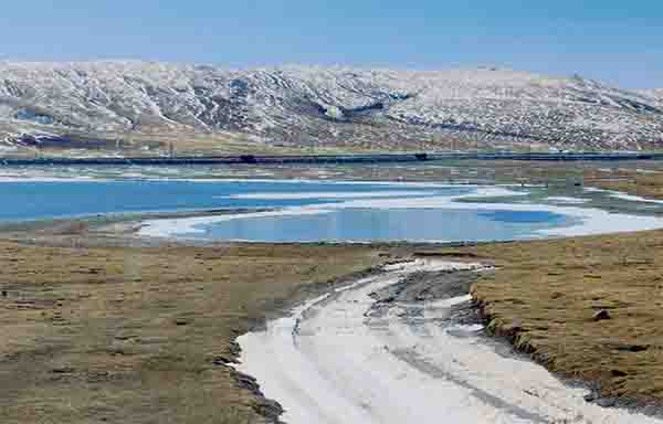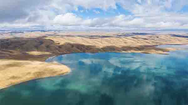 沿着鄂陵湖湖岸一路向西,经过一块水草丰美之地,看到片片泽泽连成一望无际的浅滩,扎陵湖就到了。在两湖相交的地方,一湾湖水由扎陵湖喷涌而出,同时掀起渔获,吸引着无数水鸟飞舞觅食。