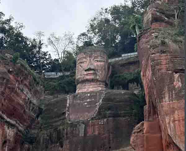 峨眉山之东约20千米的乐山大佛位于岷江、青衣江、大渡河三江交汇处,公元8世纪雕凿在江边山崖上,佛高71米,历时90年完成。乐山大佛是中国最大的石刻佛像,也是世界上最大的坐佛石像,佛体上有科学的排水系统,周围有乌尤寺、大佛寺、麻浩崖墓、唐白塔等古迹名胜。峨眉山和乐山大佛,两个分离的遗产区覆盖面积在15400公顷,是人工元素与自然美景巧妙结合的杰作。