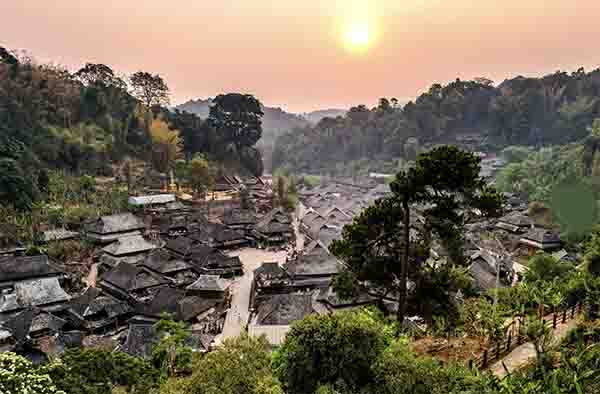 在景迈山的世界遗产申报工作中,纳入遗产要素的传统村寨共9个,包含景迈大寨、勐本、芒埂、糯岗4个傣族传统村寨,以及芒景上寨、芒景下寨、芒洪、翁基、翁洼5个布朗族传统村寨。在这些传统村寨中,糯岗是保存最完整的。“糯岗”在傣语中意为“鹿饮水的地方”,据说常有成群的鹿来此处饮水,村寨因此得名。