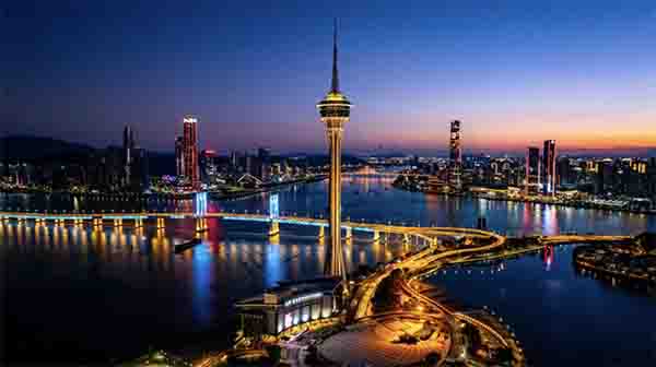 澳门位于中国大陆东南沿海,地处珠江三角洲的西岸,东邻伶仃洋,扼珠江口的咽喉,南临南海,北与珠海拱北相连。澳门由澳门半岛、?仔和路环岛三地组成,总面积达32.9平方千米。