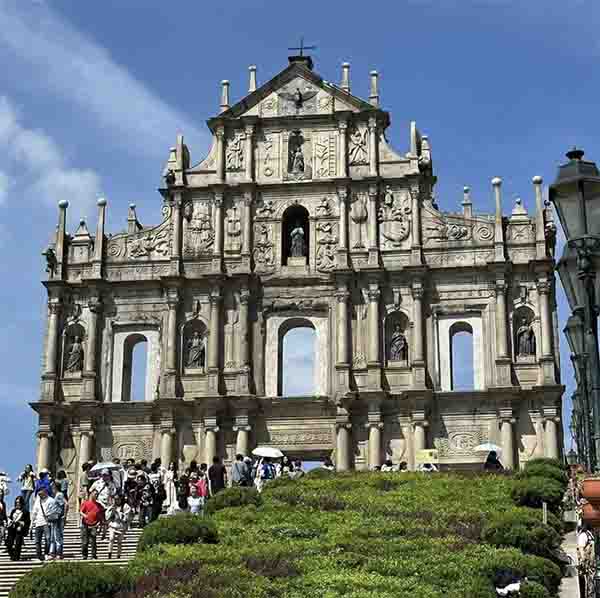 澳门地标大三巴牌坊更是中西文化交融的代表。大三巴牌坊其实是圣保禄学院天主之母教堂正面前壁的遗址。1835年,圣保禄学院发生大火,学院以及大部分建筑被毁,但教堂前壁仍然屹立不倒,因为外形很像中国式牌坊,再加上“三巴”是葡文“圣保禄”的译音,前壁遗迹就被俗称为“大三巴牌坊”。