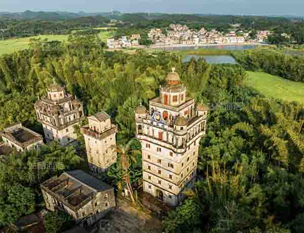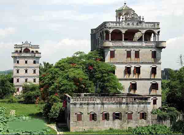 开平的华侨旅居欧美各国,因此这里的碉楼都带有浓郁的欧美风情。现存的1833座碉楼既有中国传统的硬山顶式、悬山顶式,又有国外不同时期的建筑风格,还有中西结合的庭院式、别墅式等。