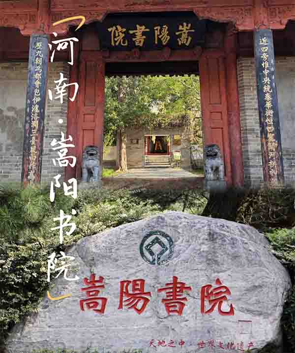 “天地之中”的遗产特色之一,就是儒释道文化都有遗存,中岳庙是道教建筑,此外嵩山还有儒家建筑书院,和中国佛教禅宗祖庭少林寺。坐落在嵩山南麓峻极峰下的嵩阳书院,是与应天府书院、岳麓书院、白鹿书院齐名的“四大书院”之一。嵩阳书院始建于北魏太和八年(484年)。