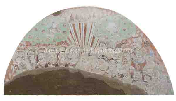 柏孜克里克石窟现存洞窟83个,保存有1200余平方米的壁画,内容包括佛、菩萨、天王等尊像画,以及说法图、经变图、供养人像、山水花鸟画和装饰图案等。柏孜克里克石窟33号洞窟有一幅《王子举哀图》。佛经里说释迦牟尼涅?后,古印度16个国家派出王子前来奔丧举哀。画面中有16个人,帽饰皆不同,体现了民族融合。