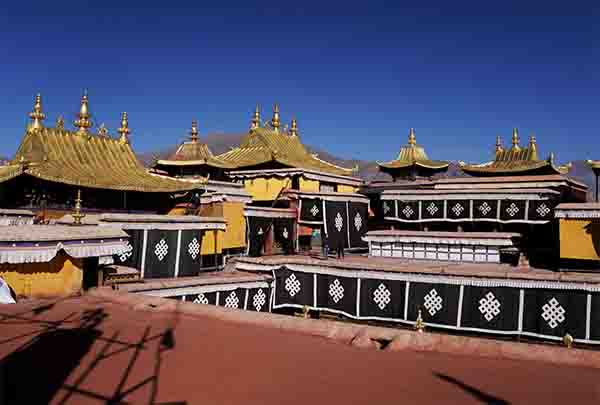 img src="jpg/a73.jpg" >大昭寺,位于布达拉宫东南方向约3公里处的老城区中心。它因松赞干布为促进佛教发展而建造,后经过元明清历朝屡加修改扩建,形成了现今的规模。环大昭寺内中心的释迦牟尼佛殿一圈称为“囊廓”,环大昭寺外墙一圈称为“八廓”,向外辐射出的街道名为“八廓街”,也称“八角街”。