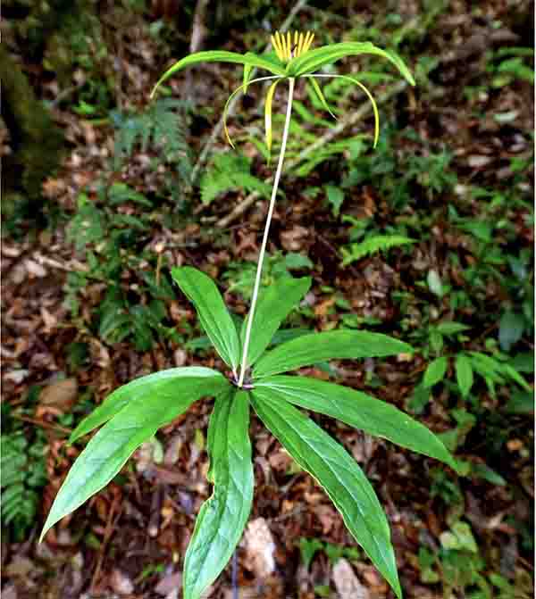 明代医药学家李时珍追随着神农的脚步,曾三进神农架进行医药考察与采集,并将众多神农架药材写进其著作《本草纲目》之中。据第四次中药资源普查初步统计,神农架中药品种已超过3600种,其中植物药超过3200种,是富有传奇色彩的是“四个一”,即4种名称上均有“一”字的草药,分别是“七叶一枝花”“头顶一颗珠”“江边一碗水”和“文王一支笔”。