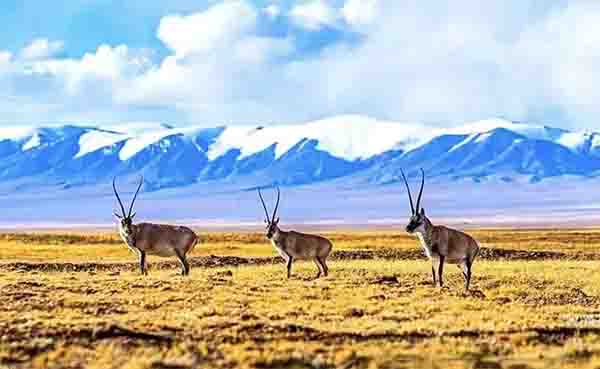 可可西里不仅以其独特的地理构造和非凡的自然美景,同时以230种野生动物和202种野生植物的珍藏,成为世界上令人惊叹的生物天堂。三分之一以上的高等植物是青藏高原所特有,靠这些植物生存的所有食草哺乳动物也只能在青藏高原中找寻,比如野牦牛、藏羚羊、野驴、白唇鹿等在此栖息,其中最具代表性的物种是藏羚羊。