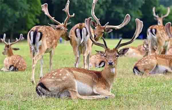 江苏大丰麋鹿国家级自然保护区坐落在中国四大湿地(南黄海湿地、青藏高原湿地、东北三江平原湿地、鄱阳湖湿地)之一的南黄海湿地上,是世界上最大的麋鹿自然保护区。在盐城市的沿海滩涂上,麋鹿自然保护区中麋鹿数量已超过4500头。麋鹿是我国特有的珍稀动物,民间俗称“四不像”,因为它头脸像马、角像鹿、颈像骆驼、尾像驴,其实它是一种鹿科动物。