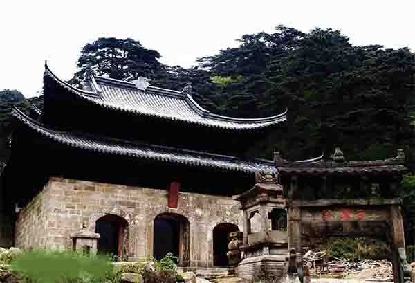 明代时,三清山道教进入一个鼎盛时期。全山建筑以三清宫道观为最,位于海拔1532米的三清福地九龙山下。前殿正殿有三间大门,正门上方悬挂有青石竖匾一方,上刻”三清福地“四个楷书大字。正门两边刻有”殿开白昼风来扫,门到黄昏云自封“的对联。大展神龛上供奉玉清元始天尊、上清灵宝天尊和太清道德天尊三位教祖神像。后殿正中供奉观音等神像,两旁偏殿亦供奉神像。后殿有偏门可以通向演教殿和万松林。
