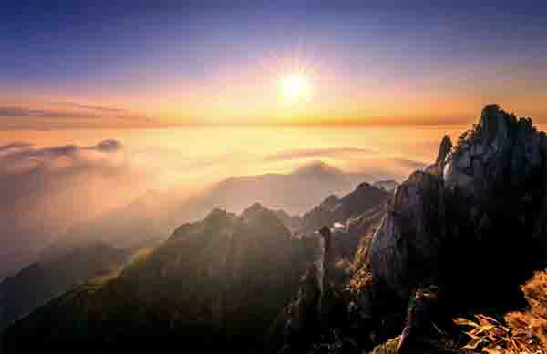 三清山以“奇”见称。三清山多奇景,云海雾涛,争奇斗艳,变幻莫测。三清山高峰插天,幽谷纵横,森林茂密。一年四季,随着气温的变化,风雨霜雪,云海雾涛,变化无穷;一日之中,晨雾暮霭,飘逸多变,形成了三清山独特的气象景观。玉京峰的日出云海最为壮观。