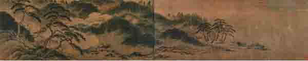 赵伯啸的这件山水长卷作品将青绿与水墨、勾勒与填色、皴擦与渲染、工笔与写意结合在一起,以局部的半边一角之势构图,山石笔法以松润灵活的卷云皴和披麻皴为主,是为北方山水雄壮之气势美向江南清雅之自然美转变的代表作品,是文人精神注入青绿山水画的典范之作。