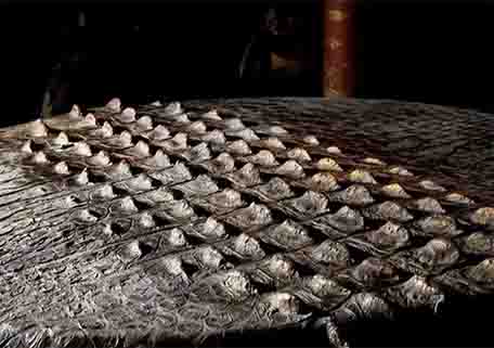 现藏日本住友泉屋博古馆。该铜鼓两侧鼓面摹铸鼍鳞格纹,与扬子鳄皮革的天然纹饰一致