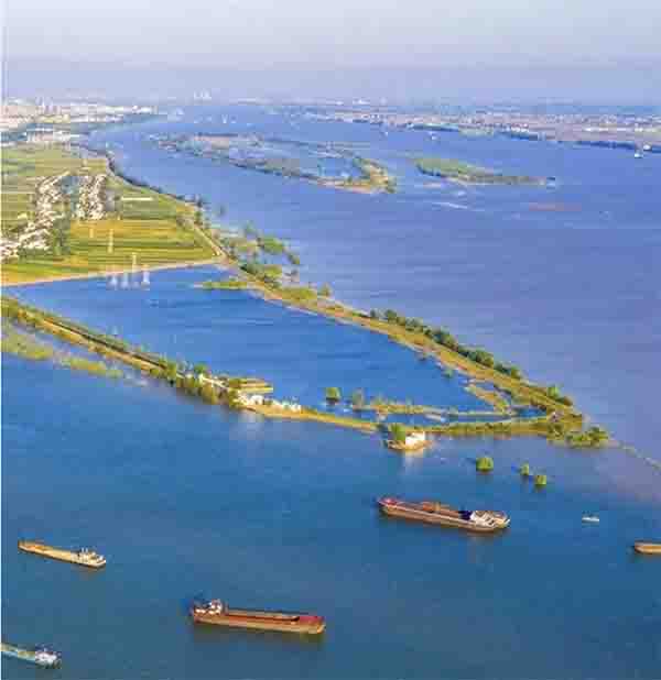 7、8月,长江主汛期来临,汹涌的长江水在湖口形成顶托,甚至倒灌入湖,将湖面推向巅峰。10月,长江水位开始回落,湖水也如大型舞剧的谢幕舞者,有节奏地逐步下降。冬季,湖底出露,化为广袤的泥滩、沙洲和蜿蜒河道。