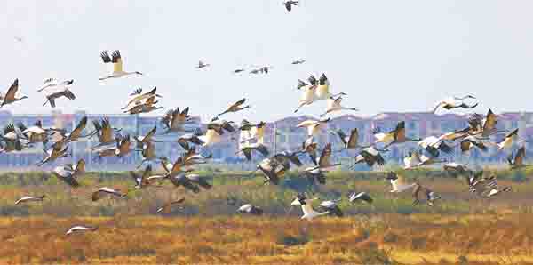 鄱阳湖湿地“湖相“向”河相“蜕变时,浅水区、湿润的泥滩、待发的草洲渐次显现,多样化的湿地生境如同画卷般徐徐铺展。”水落滩出“,是为远道而来的客人备下的盛宴。裸露的泥滩中,蕴藏着螺蚌等美食;浅水区滞留了鱼虾,各种植物蓬勃生长。