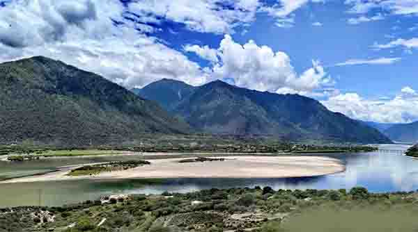 在这里,可以看到形态宛如南迦巴瓦峰的贡拉嘎布雪山、淡蓝色的雅鲁藏布江和连绵起伏的金黄色沙丘交相辉映。每当夕阳西下,沙丘在余晖中投下长长的影子,守候在雅鲁藏布江畔,成为连接雪山与江水、自然与人文的独特纽带。