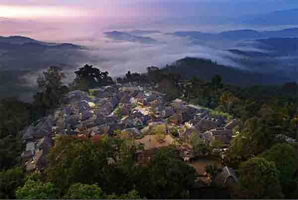云南普洱景迈山不仅有万亩茶园,而且还有许多古寨。景迈山古寨由大寨、糯岗、翁基、翁洼等14个较大的寨子构成,这些古寨都藏在密林中,茶园就围绕着这些山寨。寨子中仍是原住民,保留着本真状态。